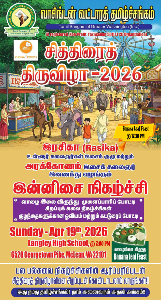 மரபு மிக்க வாசிங்டன் வட்டாரத் தமிழ்ச் சங்கம் 1979-ம் ஆண்டு தொடங்கி பொன்விழாவை நோக்கி வெற்றிகரமாகப் பயணிக்கிறது. வாசிங்டன் பகுதி வாழ் தமிழர்கள் தொடர்ந்து நம் மொழி, கலாச்சாரத்தை கட்டிக்காக்கும் வகையிலும், அடுத்த தலைமுறை நம் தமிழ் மொழியைப் போற்றும் வகையிலும், நல்ல பல நிகழ்ச்சிகளை, திட்டங்களை ஆண்டுதோறும் நம் சங்கம் முன்னெடுத்து வருகிறது. இந்த நீண்ட நெடிய தமிழ் சங்கத்தின் பயணம் என்பது, கடந்த காலங்களில் பல தமிழ் தன்னார்வலர்கள், இரவு பகல் பாராது தங்கள் நேரத்தையும், சிந்தனையையும் அளித்து திறம்பட வளர்த்து வந்ததன் வெளிப்பாடாகும். அந்த நிர்வாகிகளுக்கும், தன்னார்வத் தொண்டர்களுக்கும் இந்த நேரத்தில் நாம் மனதார நன்றி கூறக் கடமைப்பட்டுள்ளோம். புலம் பெயர்ந்த தமிழர்களாகிய நாம் ஒற்றுமையாக ஓரே அமைப்பாக நமது இருப்பை உணர்த்திக் கொண்டே இருப்பது முக்கியம். ஒவ்வொரு வெளிநாடு வாழ் தமிழரும் அருகில் உள்ள தமிழ் சங்கங்களில் இணைந்து அந்த அமைப்புகளை வலிமை உள்ளதாக ஆக்குவது தமிழராகிய நம் ஒவ்வொருவரின் கடமை. நாம் தமிழ்நாட்டில் இல்லாத குறையைப் போக்கிக்கொள்ள சித்திரைத் திருவிழா, முத்தமிழ் விழா, குழந்தைகள் தினவிழா, பொங்கல் விழா, தமிழ் இசை விழா போன்ற பல விழாக்களை ஒவ்வொரு ஆண்டும் மிகச் சிறப்பாக நடத்திக்கொண்டு வருகிறோம். இவைகளைத் தாண்டி, வாசிங்டன் வட்டாரத்திற்கு வரும் பல சிறப்பு விருந்தினர்களை, எழுத்தாளர்களை, சிந்தனையாளர்களை கவுரவப்படுத்தி பல கலந்துரையாடல் நிகழ்வுகளையும் தொடர்ந்து செய்து வருகிறோம். நம் குழந்தைகள் நன்கு தமிழ் கற்று, நம் மொழியின் அருமையை உணர்ந்துகொள்ளும் நோக்கில் நம் பகுதியில் நடத்தப்படும் தமிழ் பள்ளிகளுக்கு தமிழ்சங்கம் ஊக்கமும், உற்சாகமும் அளிக்கிறது. வெள்ளிவிழா கண்டு , பொன்விழாவை நோக்கி வீறுநடை போடும் நம் தமிழ்ச்சங்கப் பகுதியில் “வாசிங்டன் வட்டாரத் தமிழ் மையம்” அமைத்தல் நம் நீண்டநாளைய குறிக்கோள். வாசிங்டன், மேரிலாந்து மற்றும் வெர்ஜினியா பகுதியில் வாழும் தமிழர்கள் ஒவ்வொருவரும் தமிழ் சங்கத்தில் உறுப்பினராக சேர்ந்து பயன்பெறுமாறு அன்புடன் அழைக்கிறோம்.